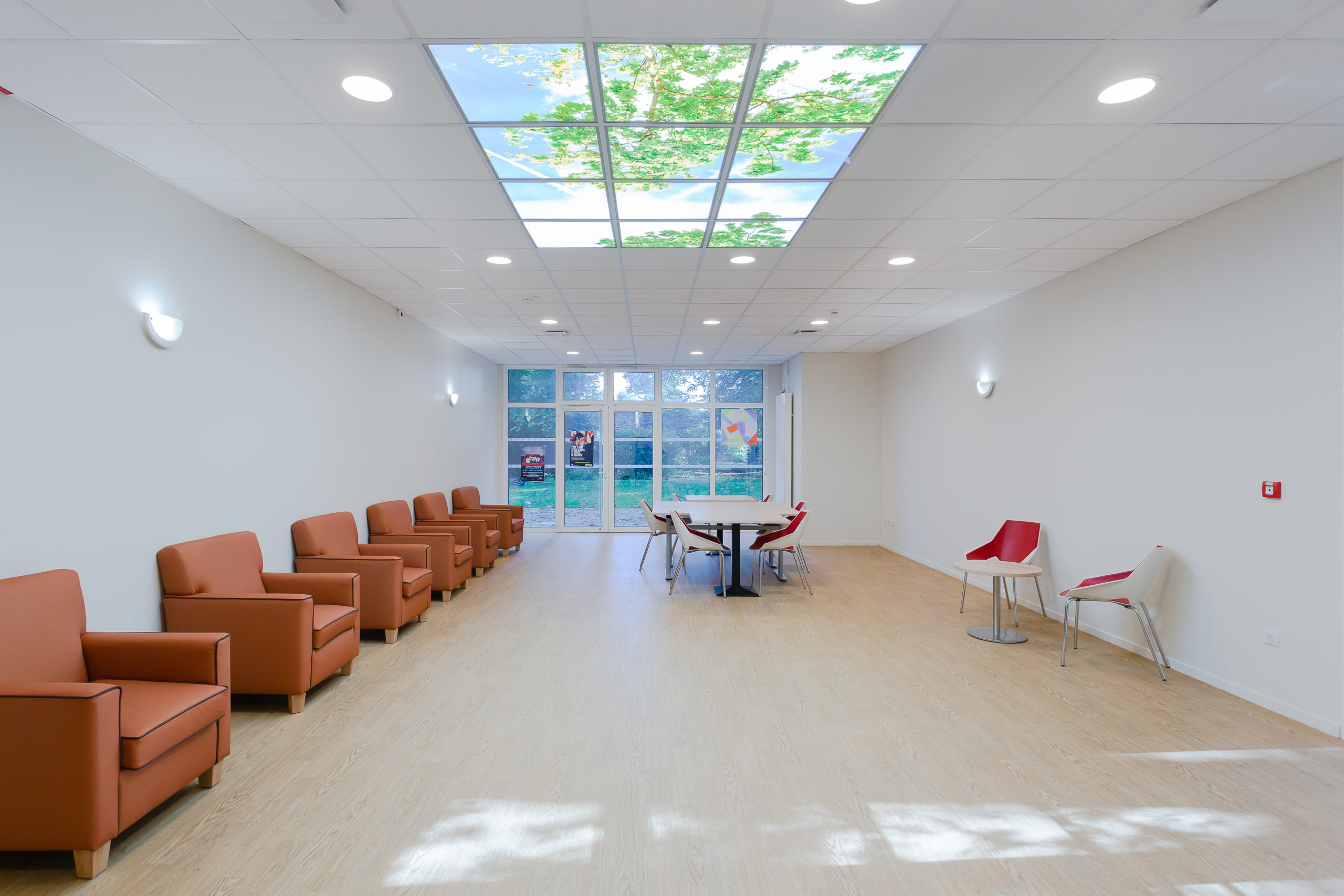 La clinique « Les Bruyères » à Auberchicourt (59). L’établissement est spécialisé dans la prise en charge et du traitement de l’addcition des affections liées aux conduites addictives. L’extension à été réalisée par l’agence d’architecture MA3 (Paris). Auberchicourt le 08/10/2021. Photo : Fabrice DUNOU
